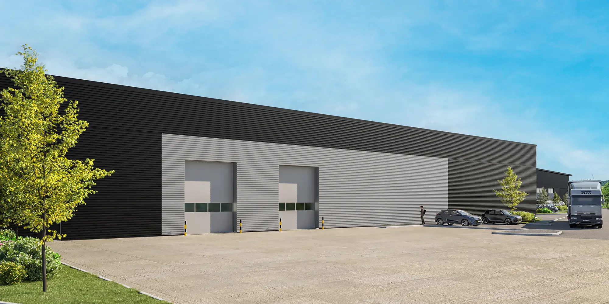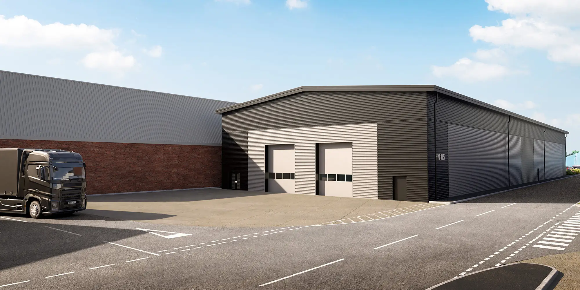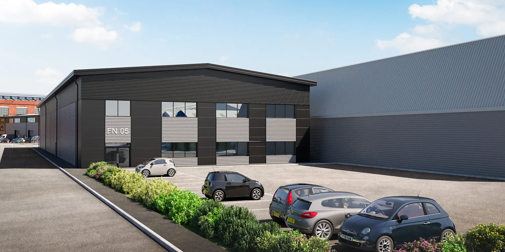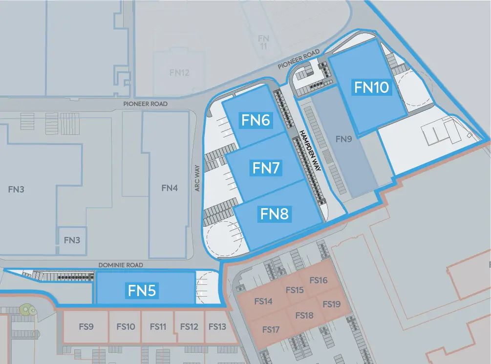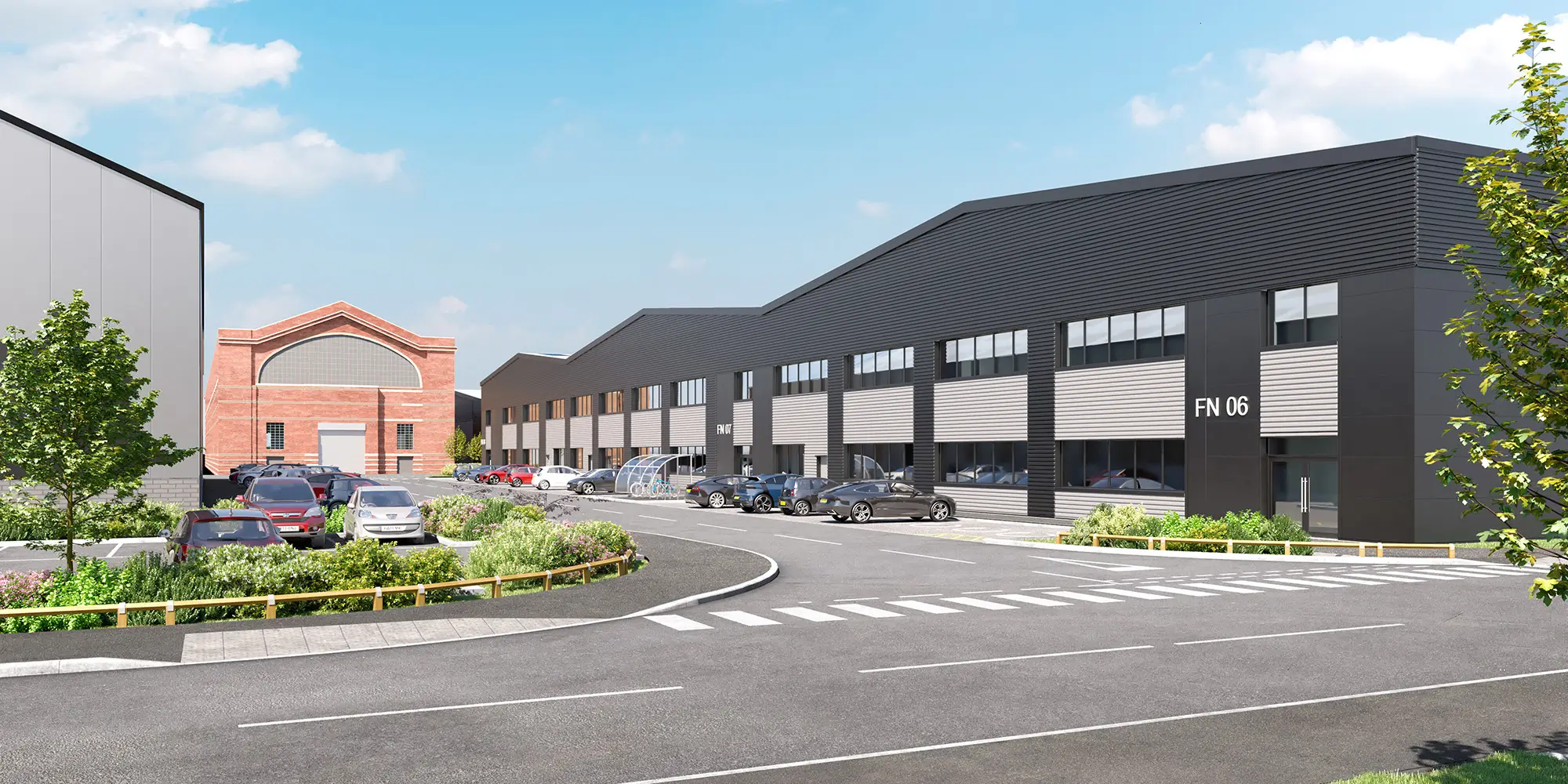 Service yards for the units will be accessible via internal access roads. The depths of these yards will vary between 20 and 25 metres, accommodating a wide range of vehicle fleets and meeting the needs of various end users. Parking facilities for visitors, staff, and cyclists will be located in close proximity to the primary office entrances of each unit.