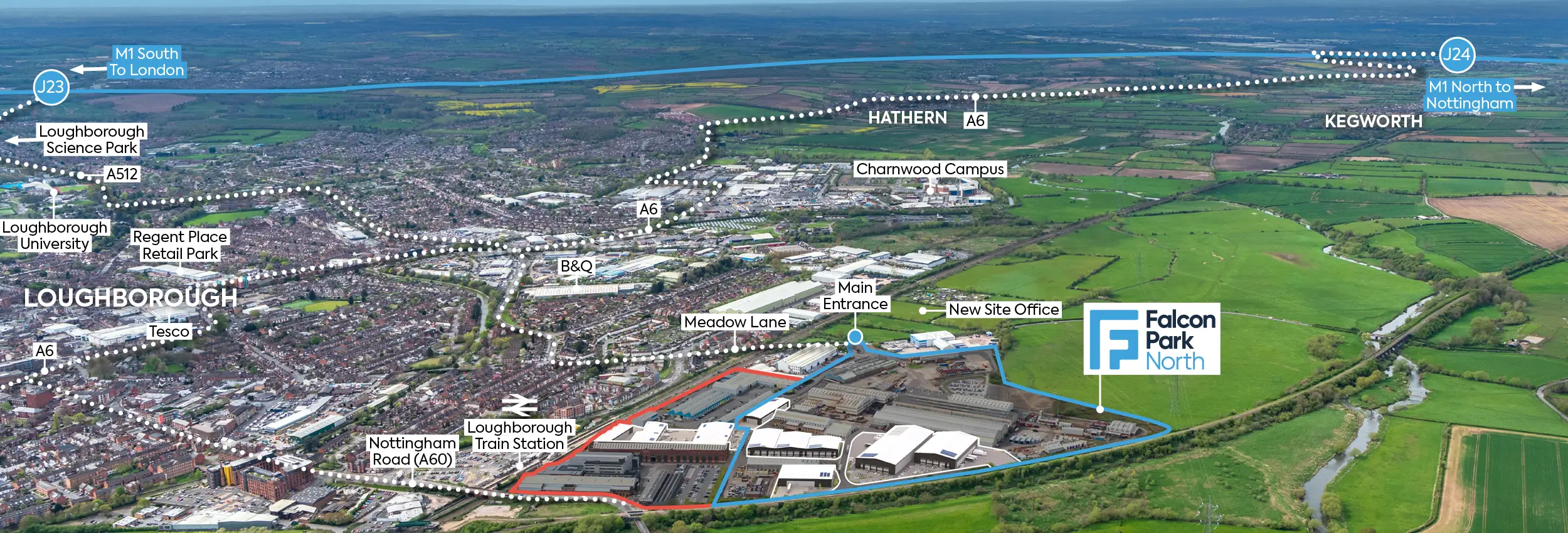 Falcon Park offers immediate access to the A6, a major arterial road in the region offering connectivity from Loughborough to several key locations, including Leicester, Nottingham, and Derby, making it a prime location for businesses looking to tap into these markets.